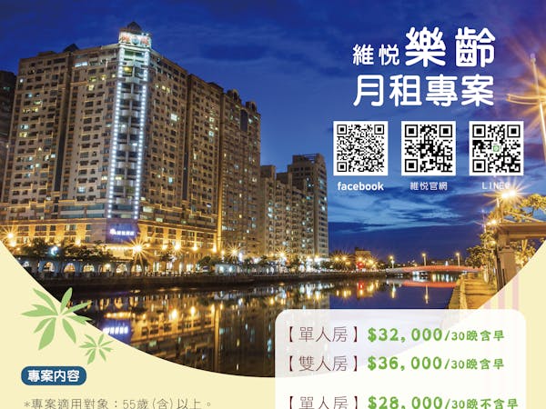 樂齡住房專案--歡迎55歲以上者入住維悅酒店,享受最愜意的渡假時光!